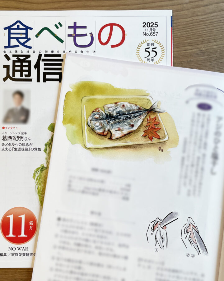 「食べもの通信11月号」四季の保存食挿絵は、「アジのひと塩干し」です。