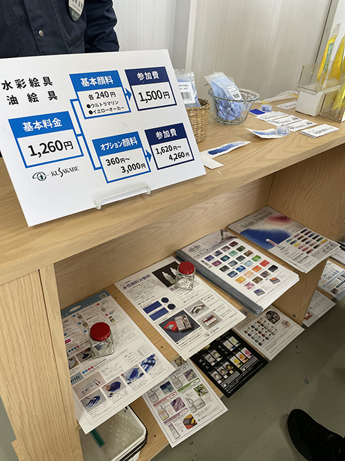 絵の具作り体験が終わったら、そこでお買い得に販売されている画材のショッピングタイム。