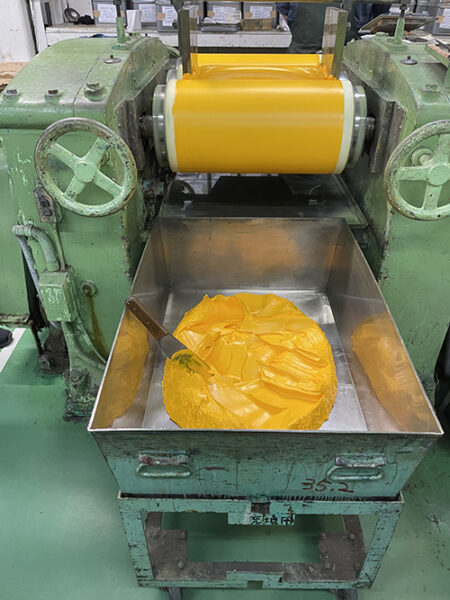 工場見学で見た、ローラーで粒子を均一にするみたいな工程です。