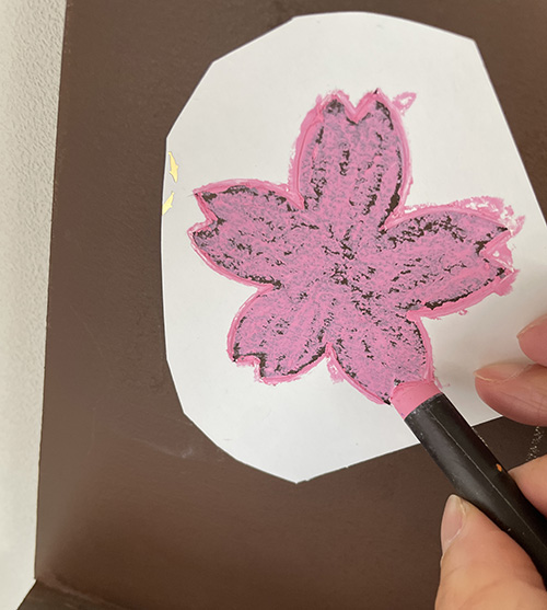 こちらもあらかじめ用意しておいた型紙でだいたいの形をとってから塗っていきます。