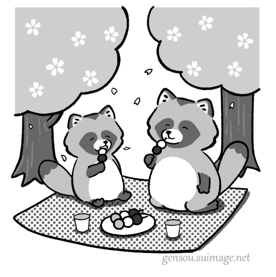 また、読者のひろばコーナーのカットでは、お花見している狸親子を描きました。